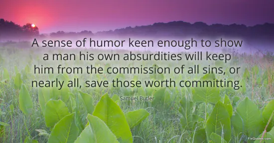 Butler, Samuel. "A sense of humor keen enough to show a man his own absurdities will keep him from the commission of all sins, or nearly all, save those worth committing." FixQuotes. January 18, 2026. https://fixquotes.com/quotes/a-sense-of-humor-keen-enough-to-show-a-man-his-8467/.