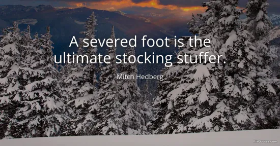 Hedberg, Mitch. (2026, January 14). A severed foot is the ultimate stocking stuffer. FixQuotes. https://fixquotes.com/quotes/a-severed-foot-is-the-ultimate-stocking-stuffer-914/