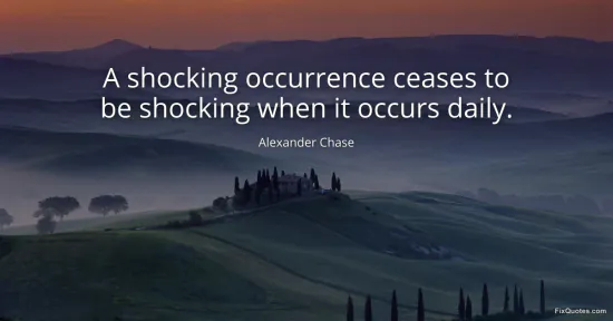 Chase, Alexander. "A shocking occurrence ceases to be shocking when it occurs daily." FixQuotes. January 16, 2026. https://fixquotes.com/quotes/a-shocking-occurrence-ceases-to-be-shocking-when-108599/.