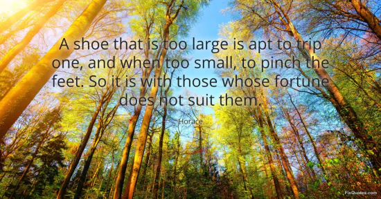 Horace. "A shoe that is too large is apt to trip one, and when too small, to pinch the feet. So it is with those whose fortune does not suit them." FixQuotes. January 18, 2026. https://fixquotes.com/quotes/a-shoe-that-is-too-large-is-apt-to-trip-one-and-8628/.