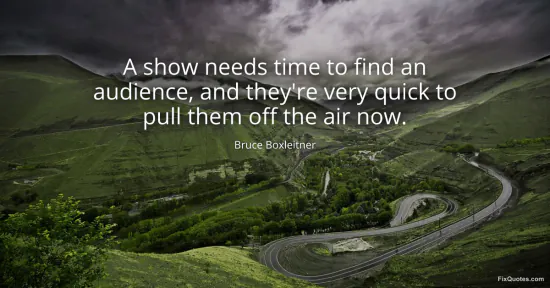 Boxleitner, Bruce. (2026, January 17). A show needs time to find an audience, and they're very quick to pull them off the air now. FixQuotes. https://fixquotes.com/quotes/a-show-needs-time-to-find-an-audience-and-theyre-43646/
