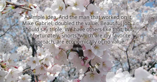 "A simple idea. And the man that worked on it, Mike Gabriel, doubled the value. Beautiful job. I should say triple. We have others like that, but, unfortunately, shorts, which are my favorite approach, are economically of no value." FixQuotes, 15 Jan. 2026, https://fixquotes.com/quotes/a-simple-idea-and-the-man-that-worked-on-it-mike-160506/. Accessed 9 Feb. 2026.