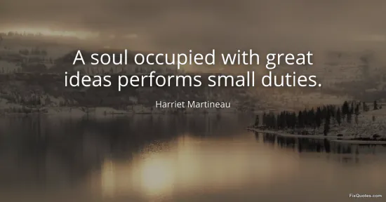 Martineau, Harriet. "A soul occupied with great ideas performs small duties." FixQuotes. January 15, 2026. https://fixquotes.com/quotes/a-soul-occupied-with-great-ideas-performs-small-148512/.