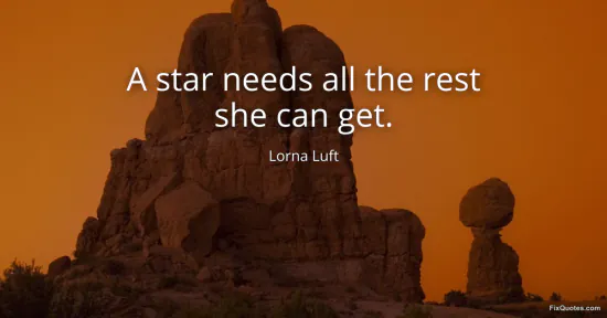 Luft, Lorna. "A star needs all the rest she can get." FixQuotes. January 17, 2026. https://fixquotes.com/quotes/a-star-needs-all-the-rest-she-can-get-69461/.