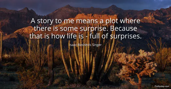 Singer, Isaac Bashevis. "A story to me means a plot where there is some surprise. Because that is how life is - full of surprises." FixQuotes. January 17, 2026. https://fixquotes.com/quotes/a-story-to-me-means-a-plot-where-there-is-some-73154/.