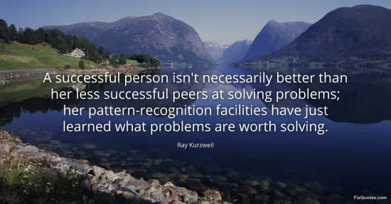 Kurzweil, Ray. (2026, January 15). A successful person isn't necessarily better than her less successful peers at solving problems; her pattern-recognition facilities have just learned what problems are worth solving. FixQuotes. https://fixquotes.com/quotes/a-successful-person-isnt-necessarily-better-than-164446/