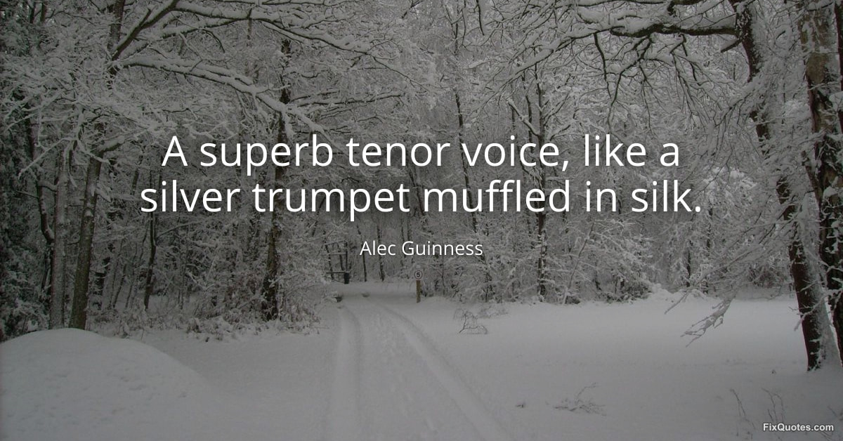 Guinness, Alec. (2026, January 17). A superb tenor voice, like a silver trumpet muffled in silk. FixQuotes. https://fixquotes.com/quotes/a-superb-tenor-voice-like-a-silver-trumpet-57277/