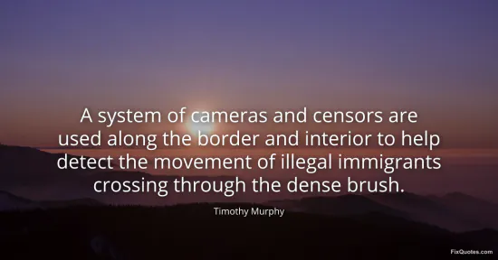 Murphy, Timothy. (2026, January 16). A system of cameras and censors are used along the border and interior to help detect the movement of illegal immigrants crossing through the dense brush. FixQuotes. https://fixquotes.com/quotes/a-system-of-cameras-and-censors-are-used-along-92241/