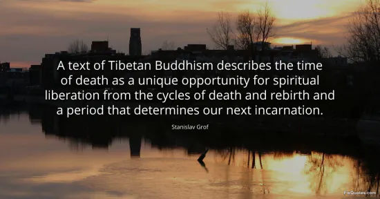Grof, Stanislav. (2026, January 16). A text of Tibetan Buddhism describes the time of death as a unique opportunity for spiritual liberation from the cycles of death and rebirth and a period that determines our next incarnation. FixQuotes. https://fixquotes.com/quotes/a-text-of-tibetan-buddhism-describes-the-time-of-86247/