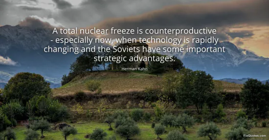 Kahn, Herman. (2026, January 16). A total nuclear freeze is counterproductive - especially now, when technology is rapidly changing and the Soviets have some important strategic advantages. FixQuotes. https://fixquotes.com/quotes/a-total-nuclear-freeze-is-counterproductive-121344/
