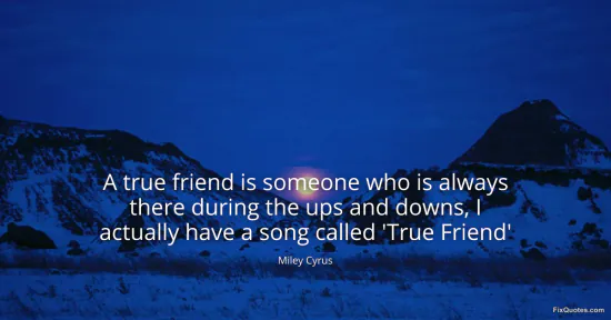 Cyrus, Miley. (2026, January 15). A true friend is someone who is always there during the ups and downs, I actually have a song called 'True Friend'. FixQuotes. https://fixquotes.com/quotes/a-true-friend-is-someone-who-is-always-there-172548/