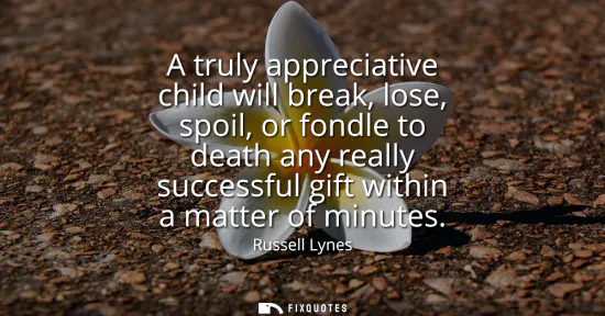 "A truly appreciative child will break, lose, spoil, or fondle to death any really successful gift within a matter of minutes"