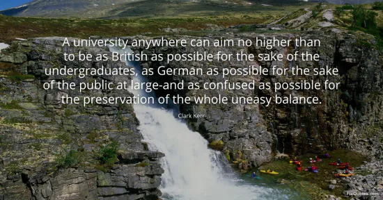 Kerr, Clark. (2026, January 17). A university anywhere can aim no higher than to be as British as possible for the sake of the undergraduates, as German as possible for the sake of the public at large-and as confused as possible for the preservation of the whole uneasy balance. FixQuotes. https://fixquotes.com/quotes/a-university-anywhere-can-aim-no-higher-than-to-47519/
