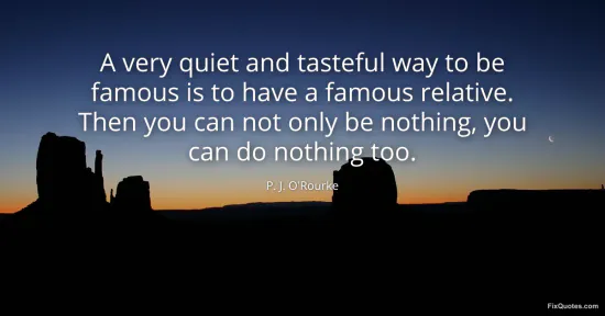 O'Rourke, P. J. "A very quiet and tasteful way to be famous is to have a famous relative. Then you can not only be nothing, you can do nothing too." FixQuotes. January 18, 2026. https://fixquotes.com/quotes/a-very-quiet-and-tasteful-way-to-be-famous-is-to-1176/.