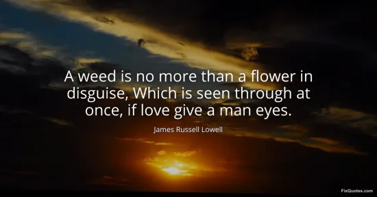 Lowell, James Russell. "A weed is no more than a flower in disguise, Which is seen through at once, if love give a man eyes." FixQuotes. February 9, 2026. https://fixquotes.com/quotes/a-weed-is-no-more-than-a-flower-in-disguise-which-13925/.