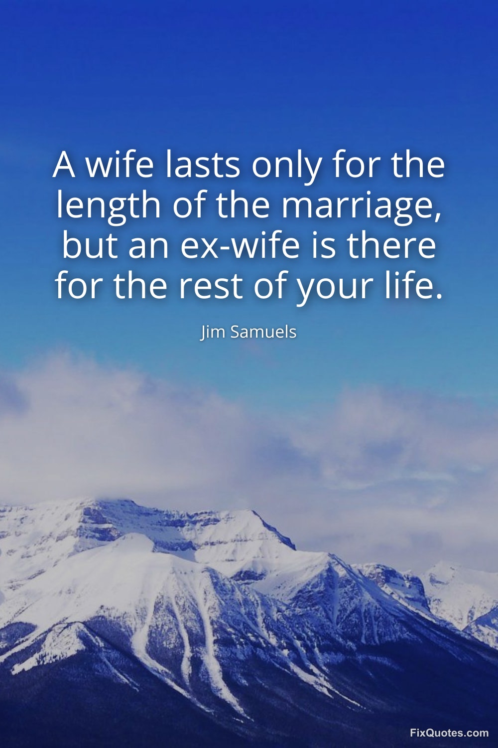 Samuels, Jim. "A wife lasts only for the length of the marriage, but an ex-wife is there for the rest of your life." FixQuotes. January 17, 2026. https://fixquotes.com/quotes/a-wife-lasts-only-for-the-length-of-the-marriage-69019/.