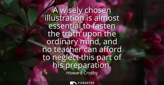 "A wisely chosen illustration is almost essential to fasten the truth upon the ordinary mind, and no teacher can afford to neglect this part of his preparation"