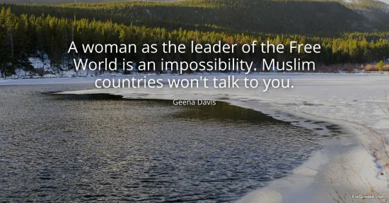 Davis, Geena. (2026, January 17). A woman as the leader of the Free World is an impossibility. Muslim countries won't talk to you. FixQuotes. https://fixquotes.com/quotes/a-woman-as-the-leader-of-the-free-world-is-an-47816/
