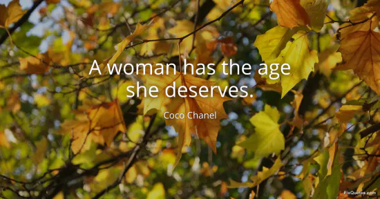 Chanel, Coco. (2026, January 15). A woman has the age she deserves. FixQuotes. https://fixquotes.com/quotes/a-woman-has-the-age-she-deserves-30621/