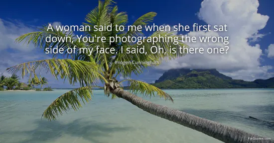 Cunningham, Imogen. (2026, January 17). A woman said to me when she first sat down, You're photographing the wrong side of my face. I said, Oh, is there one? FixQuotes. https://fixquotes.com/quotes/a-woman-said-to-me-when-she-first-sat-down-youre-61984/