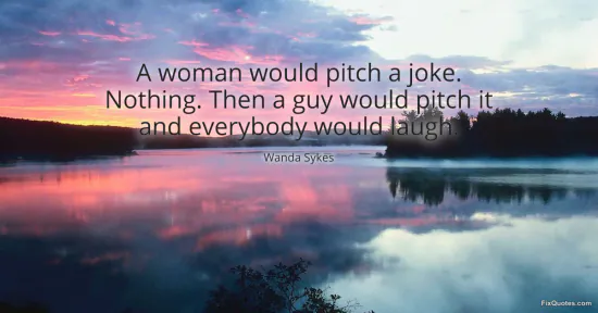 Sykes, Wanda. (2026, January 15). A woman would pitch a joke. Nothing. Then a guy would pitch it and everybody would laugh. FixQuotes. https://fixquotes.com/quotes/a-woman-would-pitch-a-joke-nothing-then-a-guy-165975/