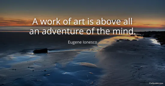 Ionesco, Eugene. (2026, January 17). A work of art is above all an adventure of the mind. FixQuotes. https://fixquotes.com/quotes/a-work-of-art-is-above-all-an-adventure-of-the-47310/