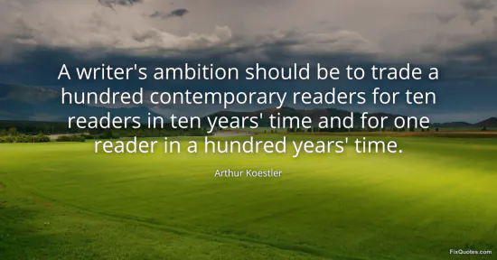 Koestler, Arthur. "A writer's ambition should be to trade a hundred contemporary readers for ten readers in ten years' time and for one reader in a hundred years' time." FixQuotes. January 16, 2026. https://fixquotes.com/quotes/a-writers-ambition-should-be-to-trade-a-hundred-109165/.