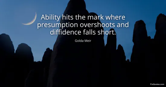 Meir, Golda. (2026, January 17). Ability hits the mark where presumption overshoots and diffidence falls short. FixQuotes. https://fixquotes.com/quotes/ability-hits-the-mark-where-presumption-74505/