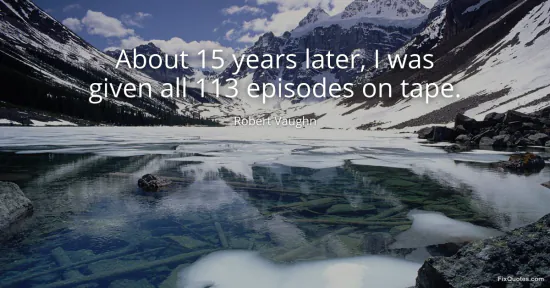 Vaughn, Robert. "About 15 years later, I was given all 113 episodes on tape." FixQuotes. January 15, 2026. https://fixquotes.com/quotes/about-15-years-later-i-was-given-all-113-episodes-153217/.