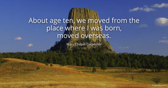 Carpenter, Mary Chapin. (2026, January 16). About age ten, we moved from the place where I was born, moved overseas. FixQuotes. https://fixquotes.com/quotes/about-age-ten-we-moved-from-the-place-where-i-was-82384/