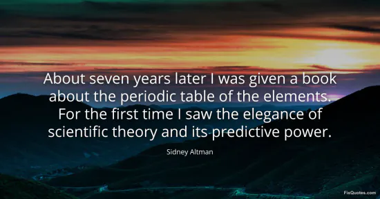 Altman, Sidney. (2026, January 17). About seven years later I was given a book about the periodic table of the elements. For the first time I saw the elegance of scientific theory and its predictive power. FixQuotes. https://fixquotes.com/quotes/about-seven-years-later-i-was-given-a-book-about-72007/