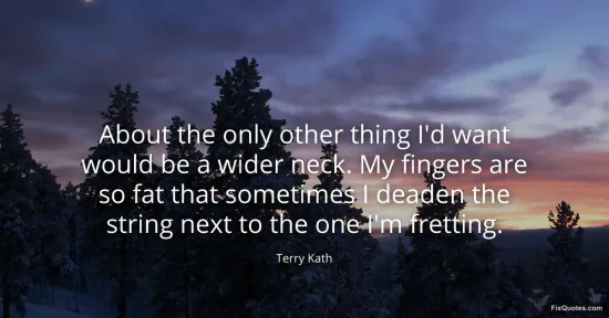 Kath, Terry. "About the only other thing I'd want would be a wider neck. My fingers are so fat that sometimes I deaden the string next to the one I'm fretting." FixQuotes. January 16, 2026. https://fixquotes.com/quotes/about-the-only-other-thing-id-want-would-be-a-107409/.