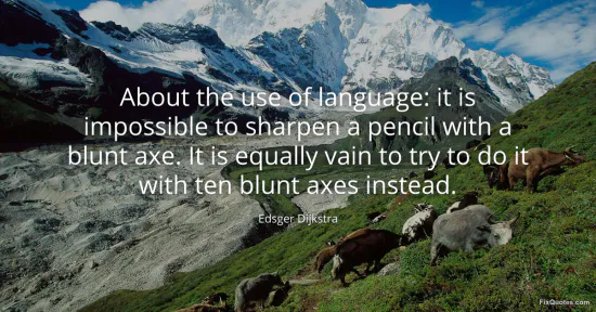 Dijkstra’s line lands like a dry slap: a humble pencil, a comically wrong tool, and then the modern punchline - scale doesn’t redeem incompetence. The image is domestic and physical, which is exactly why it works for a scientist arguing about something as abstract as language. He’s smuggling a philosophy of rigor into a kitchen-table metaphor: precision isn’t decorative; it’s the instrument.