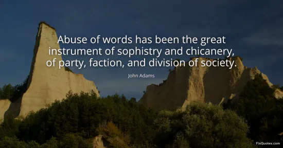 Adams, John. "Abuse of words has been the great instrument of sophistry and chicanery, of party, faction, and division of society." FixQuotes. January 17, 2026. https://fixquotes.com/quotes/abuse-of-words-has-been-the-great-instrument-of-25252/.