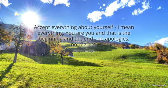 Kissinger, Henry A. "Accept everything about yourself - I mean everything, You are you and that is the beginning and the end - no apologies, no regrets." FixQuotes. January 15, 2026. https://fixquotes.com/quotes/accept-everything-about-yourself-i-mean-14636/.