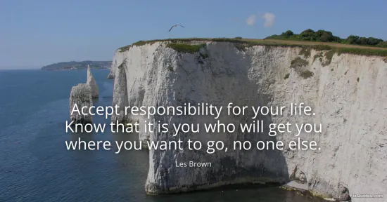 Brown, Les. (2026, January 15). Accept responsibility for your life. Know that it is you who will get you where you want to go, no one else. FixQuotes. https://fixquotes.com/quotes/accept-responsibility-for-your-life-know-that-it-22376/