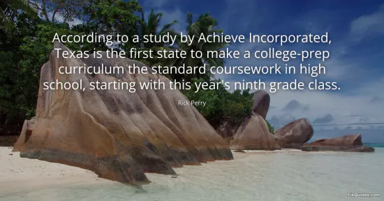 Perry, Rick. (2026, January 18). According to a study by Achieve Incorporated, Texas is the first state to make a college-prep curriculum the standard coursework in high school, starting with this year's ninth grade class. FixQuotes. https://fixquotes.com/quotes/according-to-a-study-by-achieve-incorporated-1431/