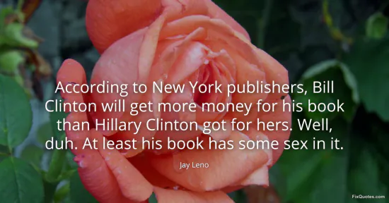 Leno, Jay. (2026, January 15). According to New York publishers, Bill Clinton will get more money for his book than Hillary Clinton got for hers. Well, duh. At least his book has some sex in it. FixQuotes. https://fixquotes.com/quotes/according-to-new-york-publishers-bill-clinton-151732/