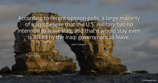 Conyers, John. (2026, January 16). According to recent opinion polls, a large majority of Iraqis believe that the U.S. military has no intention to leave Iraq, and that it would stay even is asked by the Iraqi government to leave. FixQuotes. https://fixquotes.com/quotes/according-to-recent-opinion-polls-a-large-114141/