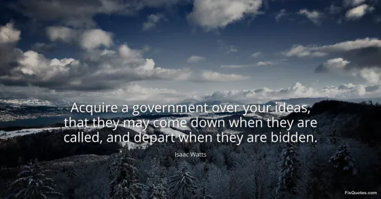 Watts, Isaac. (2026, January 15). Acquire a government over your ideas, that they may come down when they are called, and depart when they are bidden. FixQuotes. https://fixquotes.com/quotes/acquire-a-government-over-your-ideas-that-they-161842/