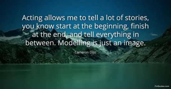 Diaz, Cameron. "Acting allows me to tell a lot of stories, you know start at the beginning, finish at the end, and tell everything in between. Modelling is just an image." FixQuotes. January 15, 2026. https://fixquotes.com/quotes/acting-allows-me-to-tell-a-lot-of-stories-you-142051/.