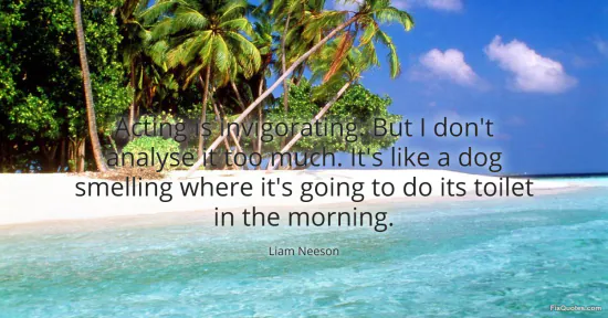 Neeson, Liam. (2026, January 16). Acting is invigorating. But I don't analyse it too much. It's like a dog smelling where it's going to do its toilet in the morning. FixQuotes. https://fixquotes.com/quotes/acting-is-invigorating-but-i-dont-analyse-it-too-107764/