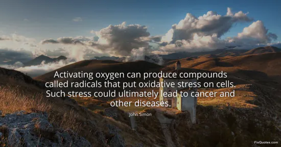 Simon, John. "Activating oxygen can produce compounds called radicals that put oxidative stress on cells. Such stress could ultimately lead to cancer and other diseases." FixQuotes. January 16, 2026. https://fixquotes.com/quotes/activating-oxygen-can-produce-compounds-called-113607/.