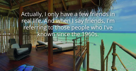 Reno, Jean. "Actually, I only have a few friends in real life. And when I say friends, I'm referring to those people who I've known since the 1960s." FixQuotes. January 18, 2026. https://fixquotes.com/quotes/actually-i-only-have-a-few-friends-in-real-life-13599/.