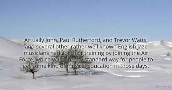 Parker, Evan. (2026, January 15). Actually John, Paul Rutherford, and Trevor Watts, and several other rather well known English jazz musicians had got their training by joining the Air Force, which was a pretty standard way for people to get some kind of musical education in those days. FixQuotes. https://fixquotes.com/quotes/actually-john-paul-rutherford-and-trevor-watts-154236/