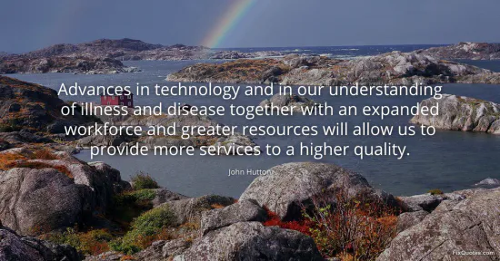 A tidy cascade of promises: technology gets smarter, medicine gets wiser, the workforce grows, resources expand, and somehow quality rises as services multiply. John Hutton’s sentence is built like a conveyor belt, moving the reader from “advances” to “allow” with the quiet inevitability of a budget briefing. The intent is reassurance. If you’re worried about strained hospitals, aging populations, or political blame, this line offers a managed optimism: progress is coming, and it will be administered.