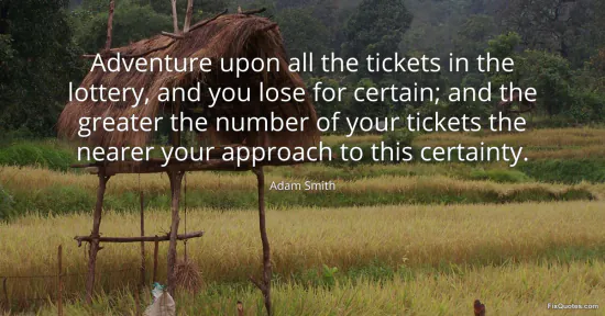 Smith, Adam. "Adventure upon all the tickets in the lottery, and you lose for certain; and the greater the number of your tickets the nearer your approach to this certainty." FixQuotes. January 14, 2026. https://fixquotes.com/quotes/adventure-upon-all-the-tickets-in-the-lottery-and-29519/.