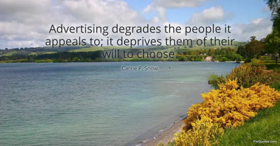 Snow, Carrie P. (2026, January 14). Advertising degrades the people it appeals to; it deprives them of their will to choose. FixQuotes. https://fixquotes.com/quotes/advertising-degrades-the-people-it-appeals-to-it-142075/