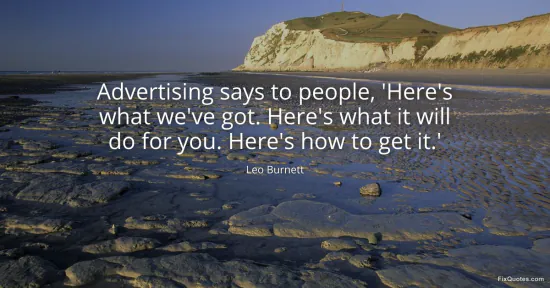 Burnett, Leo. (2026, January 14). Advertising says to people, 'Here's what we've got. Here's what it will do for you. Here's how to get it.'. FixQuotes. https://fixquotes.com/quotes/advertising-says-to-people-heres-what-weve-got-152695/