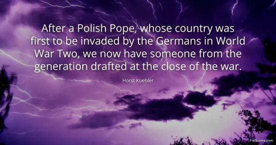 Koehler, Horst. (2026, January 18). After a Polish Pope, whose country was first to be invaded by the Germans in World War Two, we now have someone from the generation drafted at the close of the war. FixQuotes. https://fixquotes.com/quotes/after-a-polish-pope-whose-country-was-first-to-be-19902/